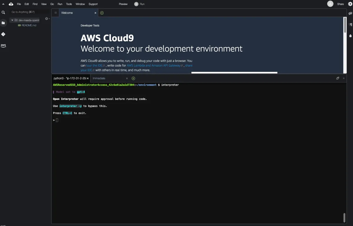 筆者はAWSとLinuxに慣れているので、自由度が高くAWS Cloud9は割と好きです。Open Interpreterの動作環境としてはGitHub Codespacesと差はありません。