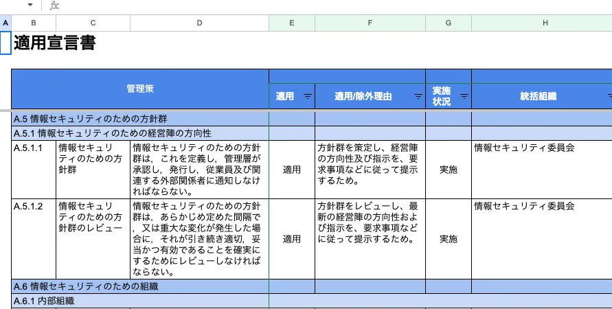 (Excelの適用宣言書は古いため、ISO/IEC 27001:2013の内容となっています。)