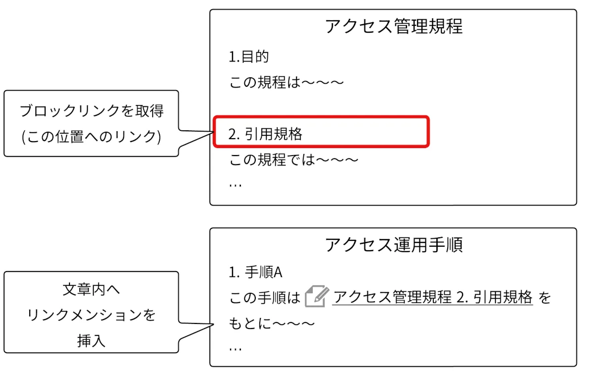 規程文書のタイトルや章番号が変更されても自動的に反映されるリンクメンションであれば、最初の紐付けこそ手間ではありますが、以降のメンテナンスの手間を大幅に削減できます。また、リンクメンション機能はISMSに限らず、複数の文書を連携させながら運用する業務であれば、同様のアプローチで属人性を減らすことが可能です。