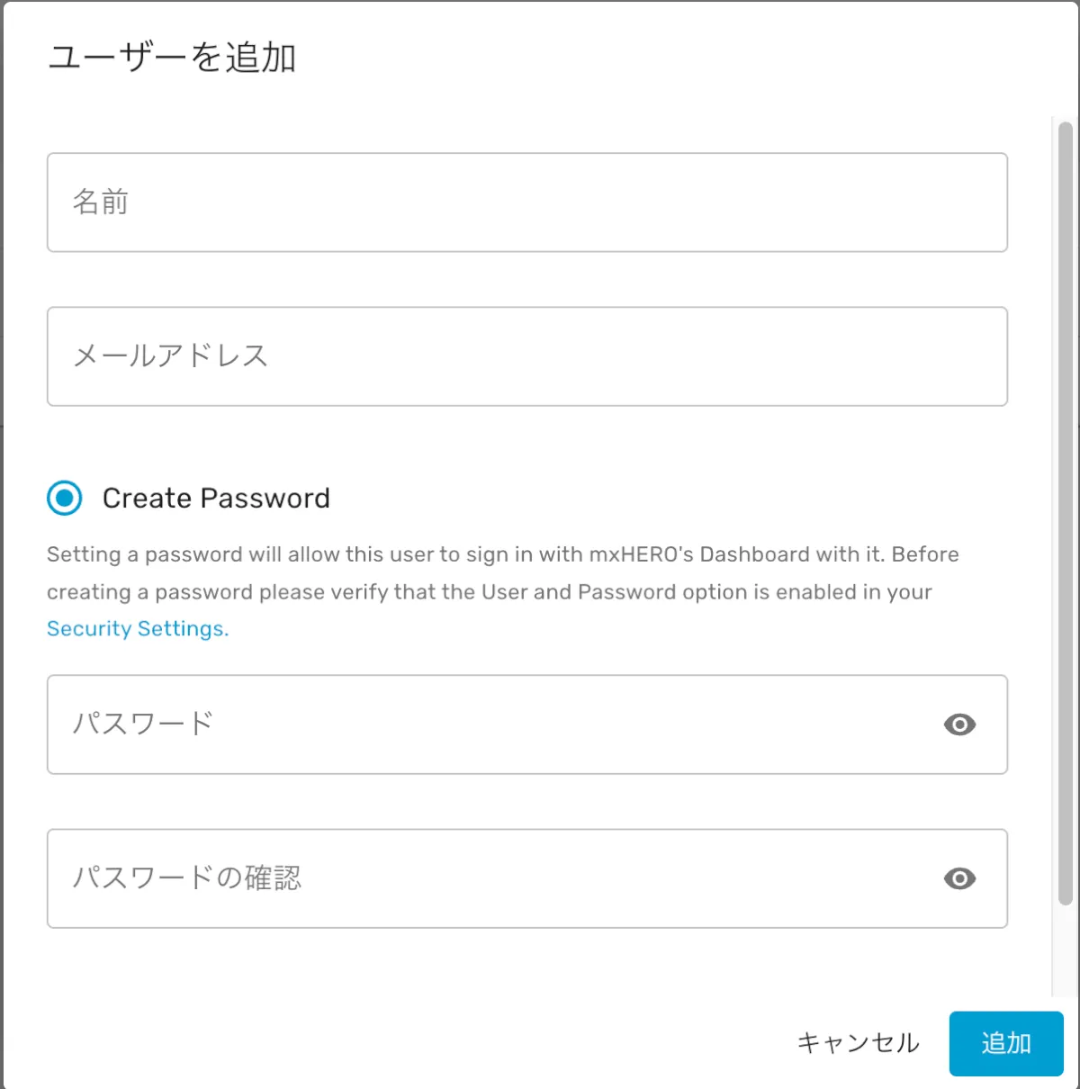 - 必要情報を入力し、【追加】をクリックします。
