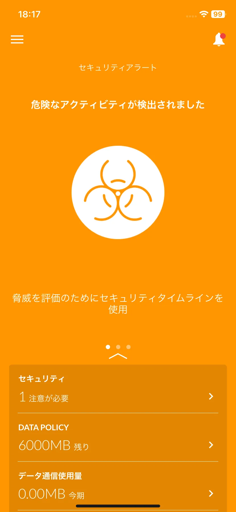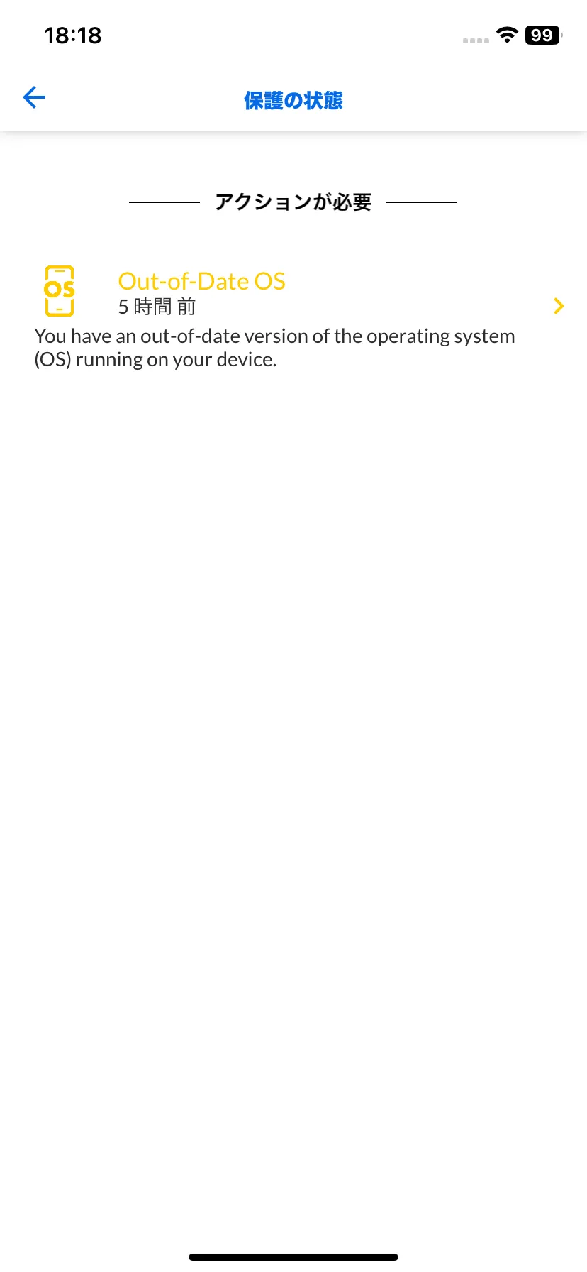 - OSアップデートをしていない端末で設定したので早速アラートがでていました。