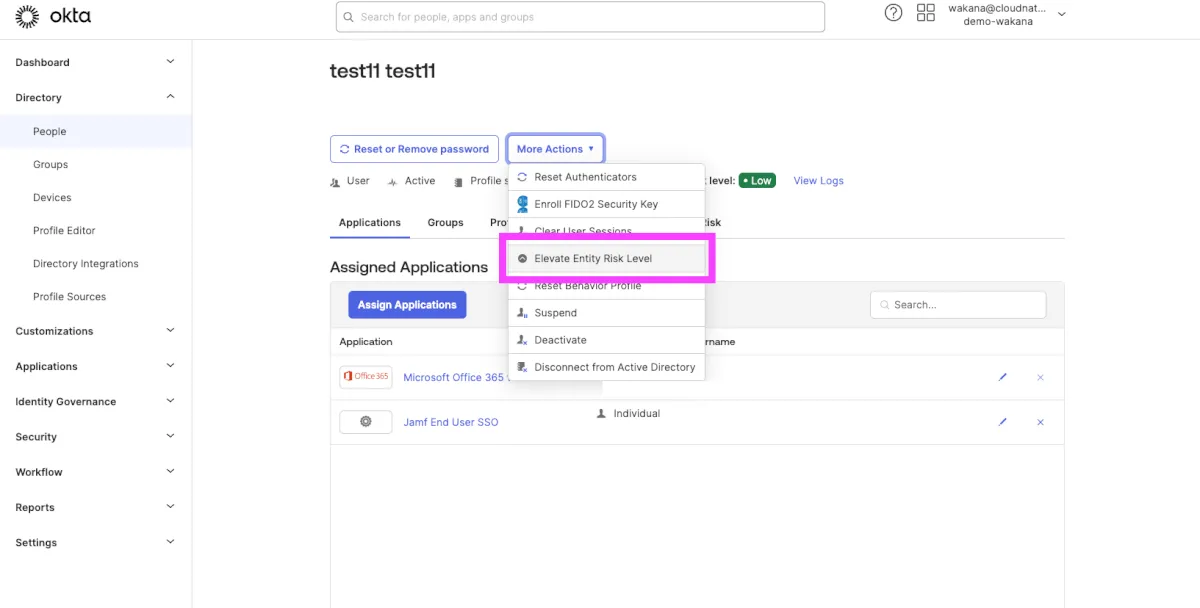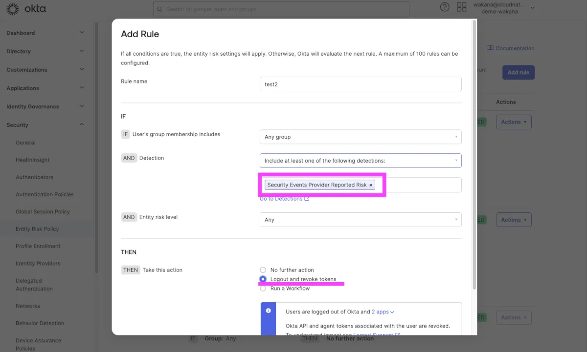まずはRiskを検知したらOktaとアプリケーションのログアウトをする流れを作ってみます!