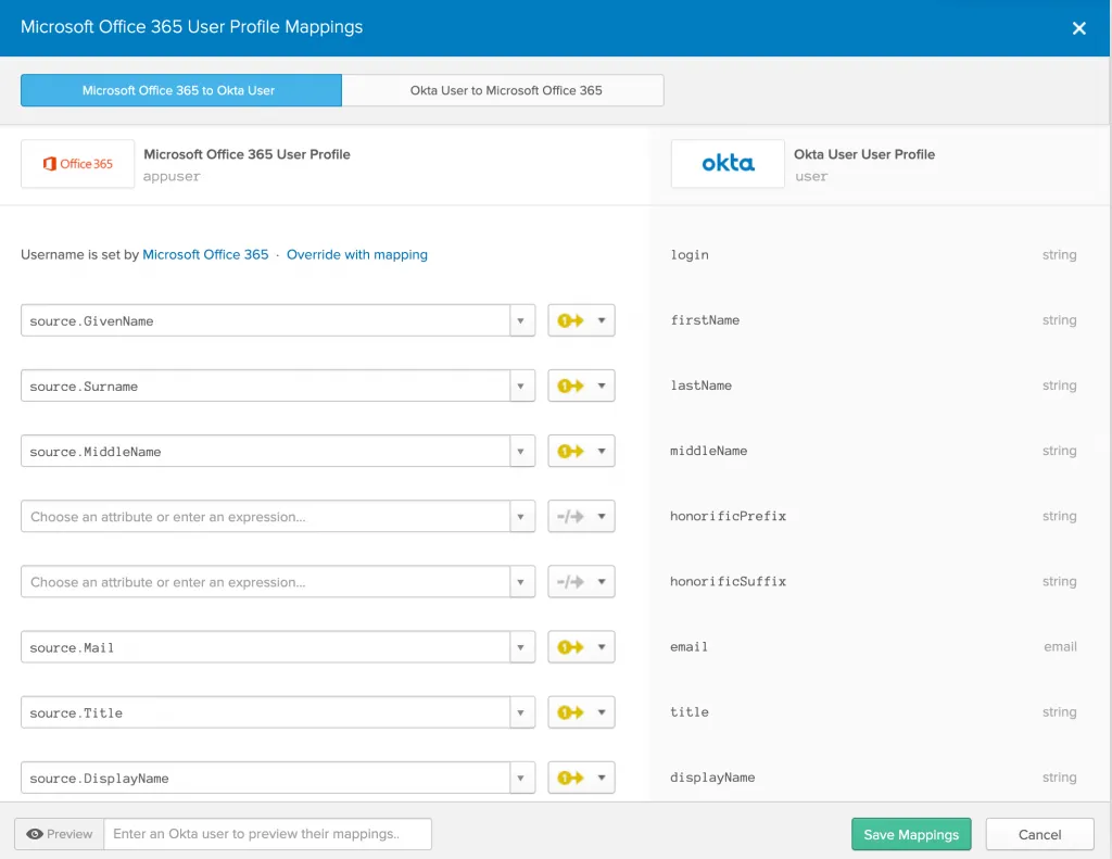 MS365の基本的なユーザー属性をOkta上で変更ができます。確か150項目くらい。もちろん最低限だけ埋めて、その他を空白にすることも可能です。 MS365(Azure AD)から属性の変更やパスワードの変更ができなくなるので注意してください。