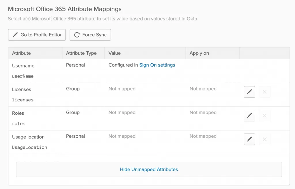 MS365のアプリケーション設定でマッピングできる属性値は、あくまでMS365の形式で記述がされています。 なので、他のSaaSから属性値を持っていきたい場合は、一回プロフィールエディタで定義を行った後に、MS365のマッピングテンプレートで定義するという作業が必要になります。