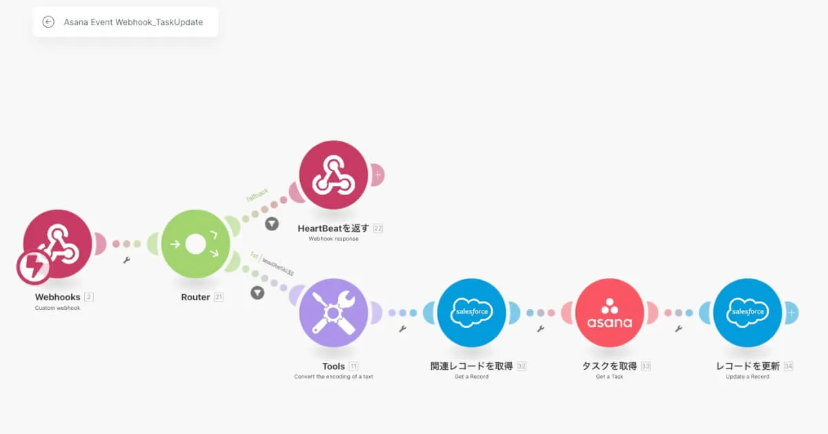 自動化事例2:Asanaのタスクが更新されるとSalesforceへデータを同期
