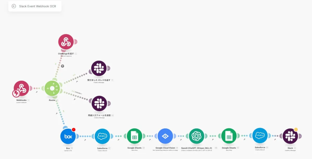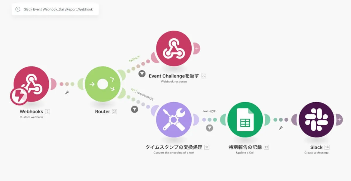 元はWorkatoで作っていましたが、makeに置き換えるとこうなります。