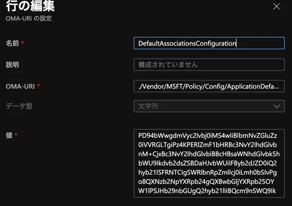 IntuneのOMA-URIを下記の通り設定/配信することで、拡張子別でアプリケーションの紐付けの変更が可能です。 そこで、今回は ブラウザの関連付けを「Google Chrome」へ変更をしてみます。