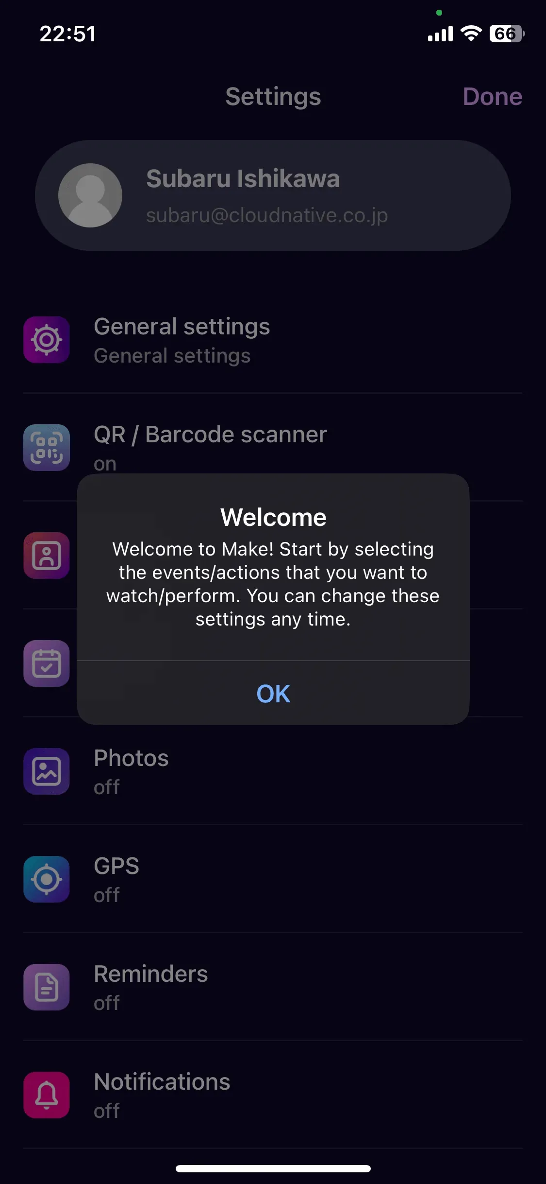 正常に送信され、makeがWebhookを受信できると「Successfully determined」と表示されますので、「OK」を選択します。