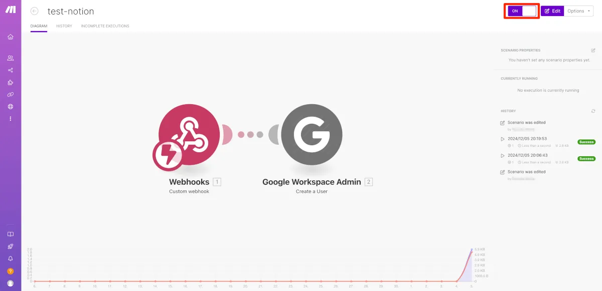 Scenarioを実行する場合、即時実行(Instant)と定期実行(Scheduling)があり、Webhookは前者に該当します。つまり、Webhookを受信したら即実行になります。
