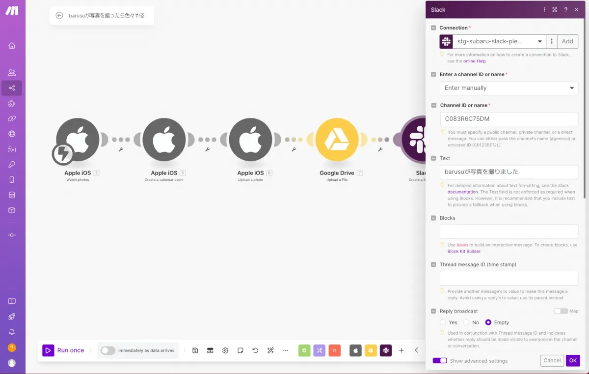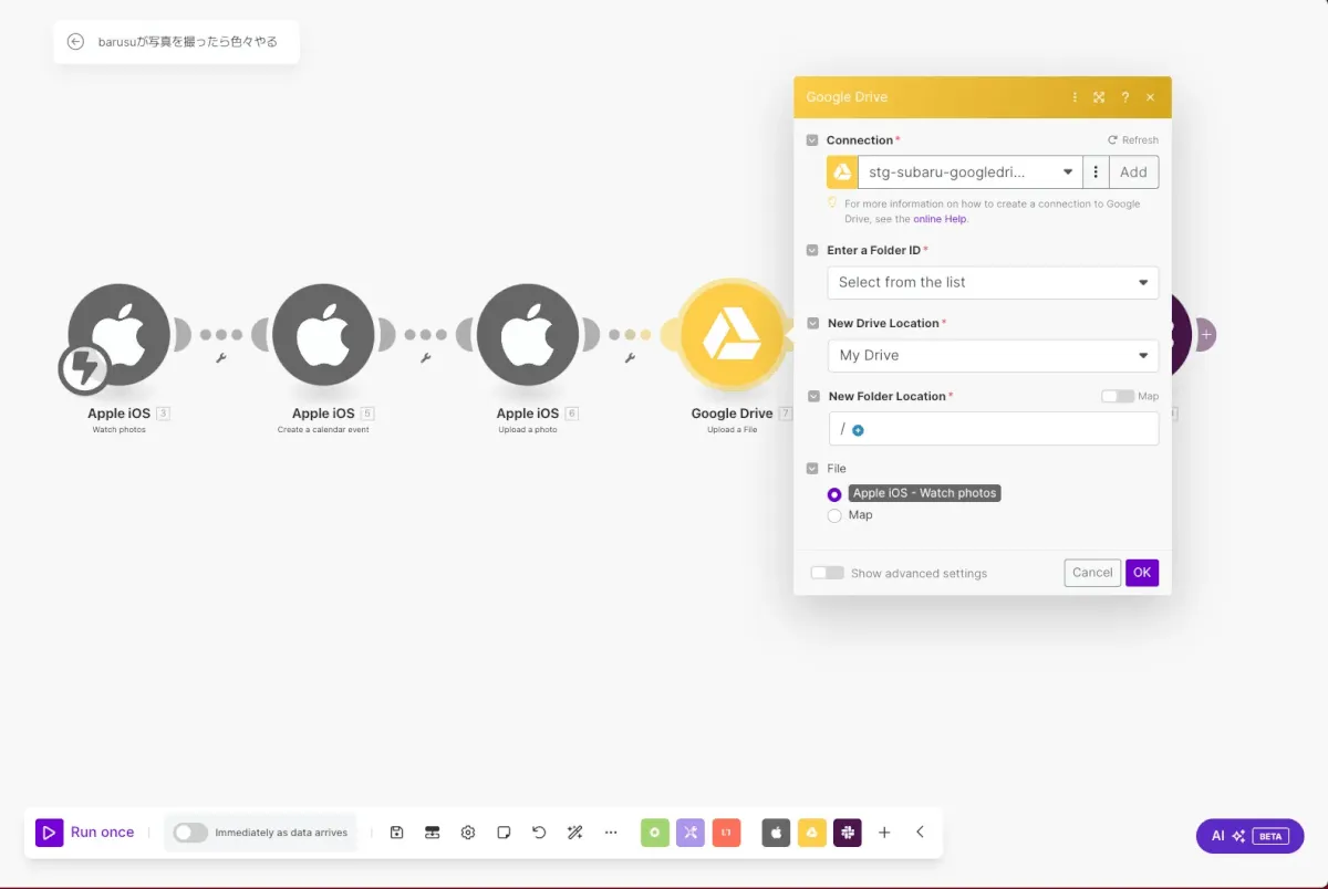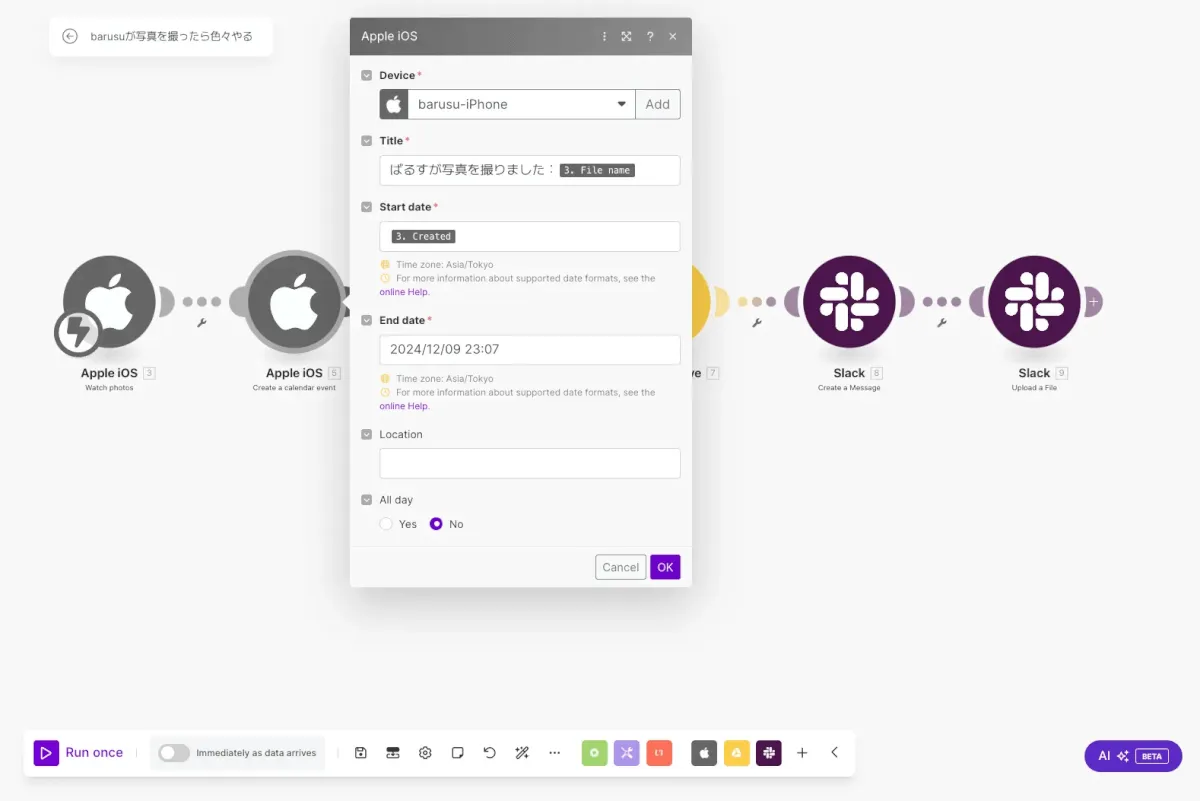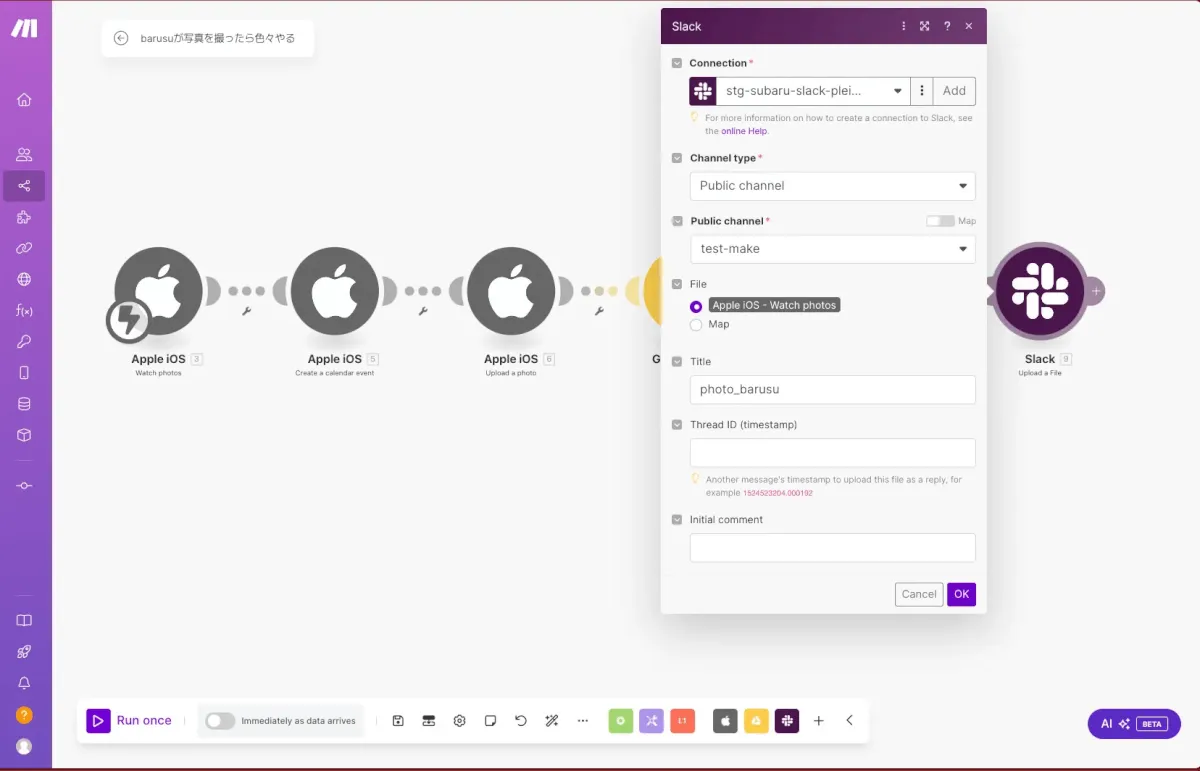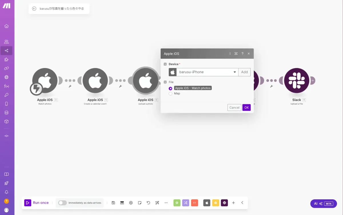 - 新しい写真が撮影されたときに自動的にmakeに送信