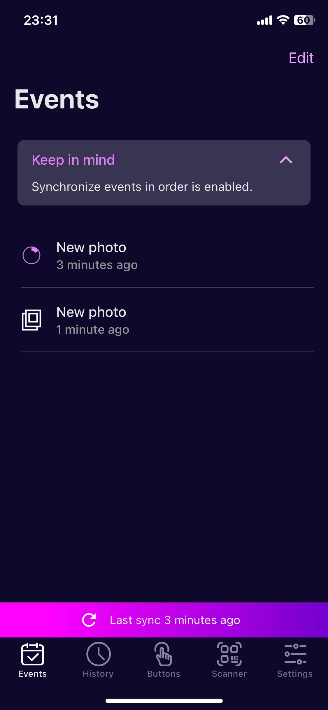 写真を撮った後、makeアプリを開く→イベントリストに登録されてるのを確認