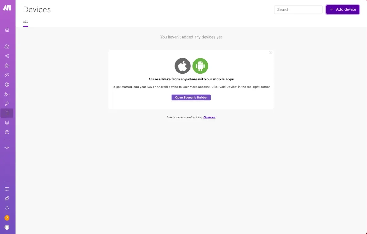 Devices機能は、iOSやAndroidデバイスをmakeと連携させることができる機能です。