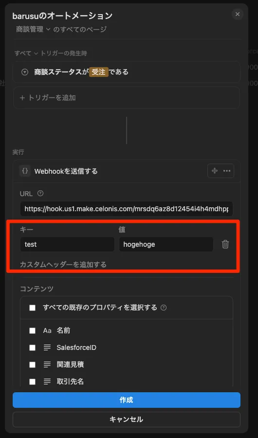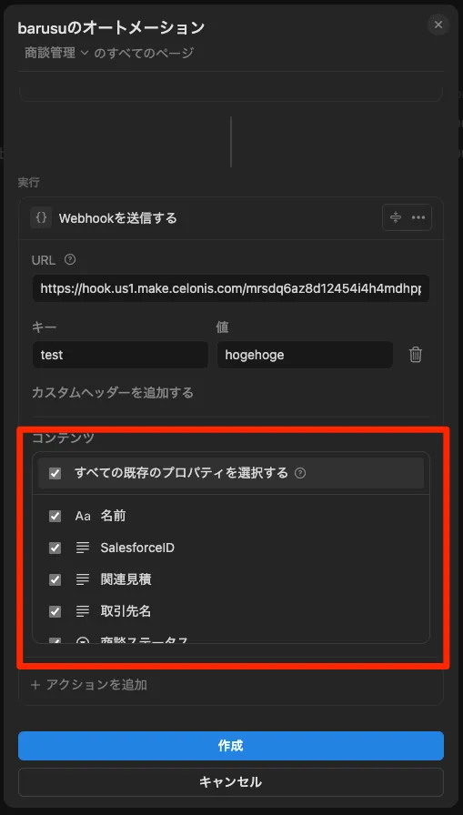 Webhookアクションを設定してみる