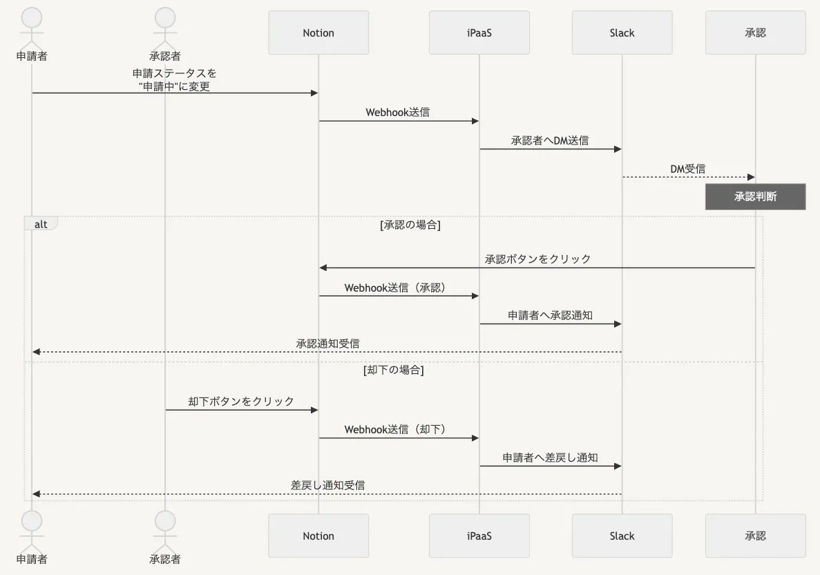 - 承認者がNotion上のボタンをクリックして承認/却下を選択