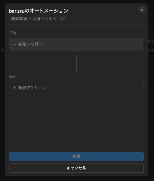 データベースのメニュー:「オートメーション」をクリック