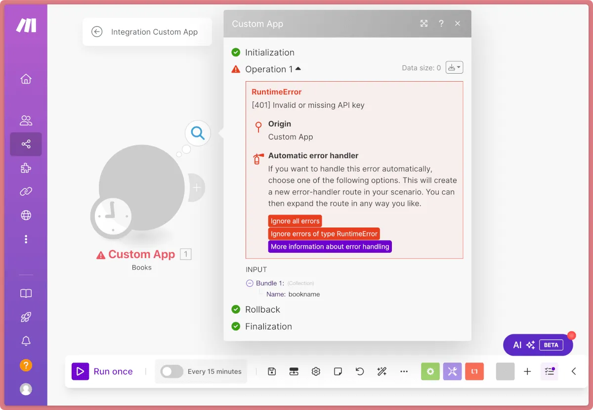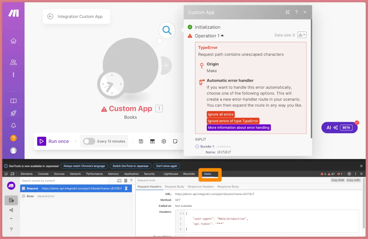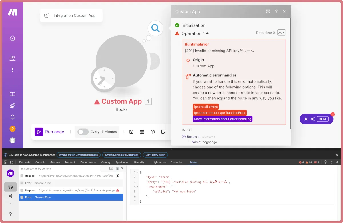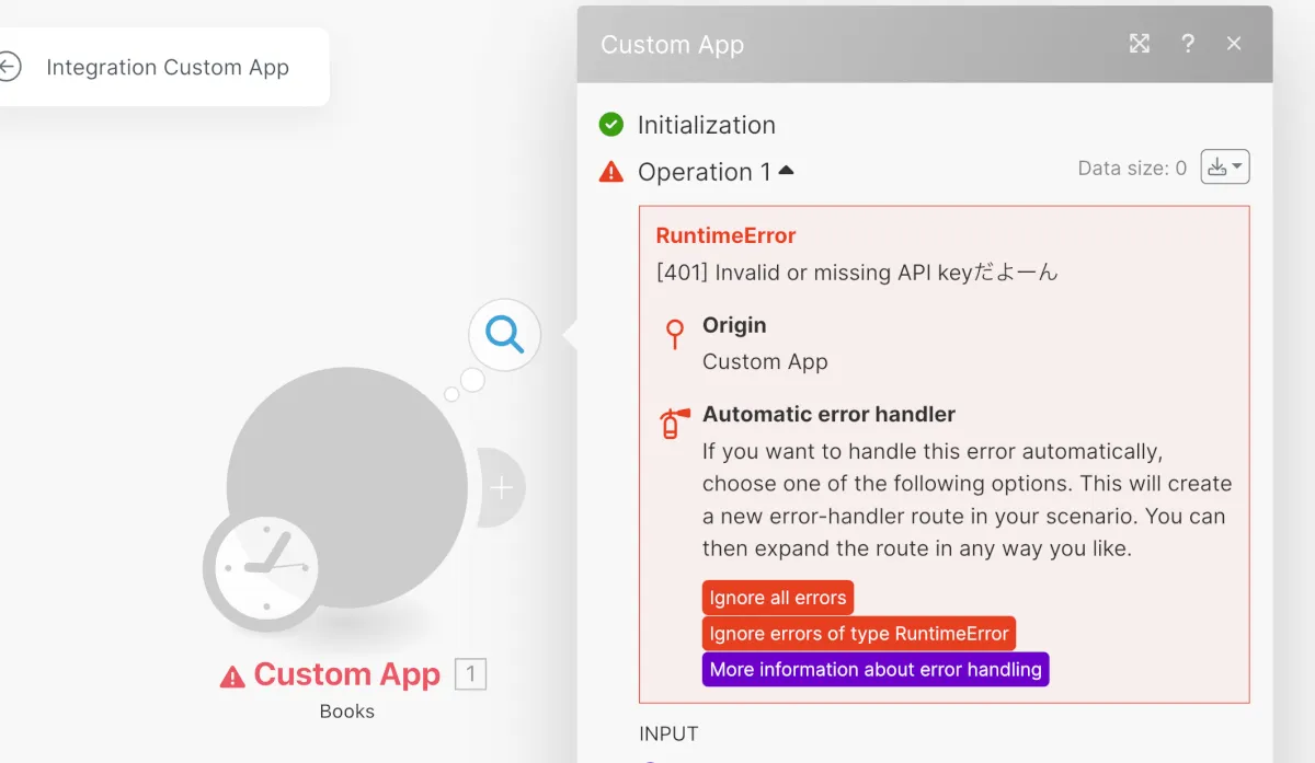 エラーハンドリング用のJSONを書くことで、makeのUI上で簡単にエラーハンドリングができるようになります。