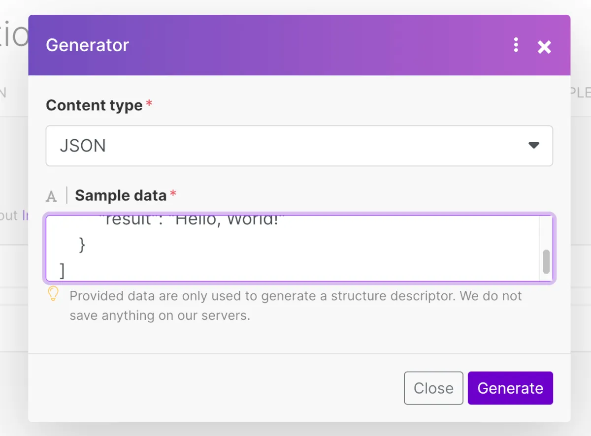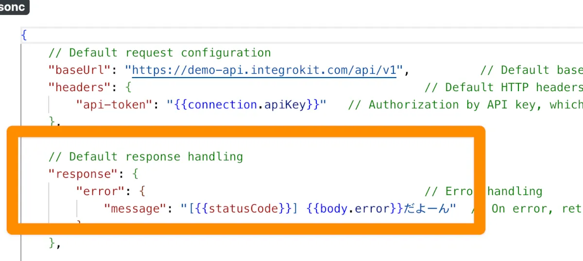 Connectionを追加すると、最初はサンプルのJSONが入力されています。