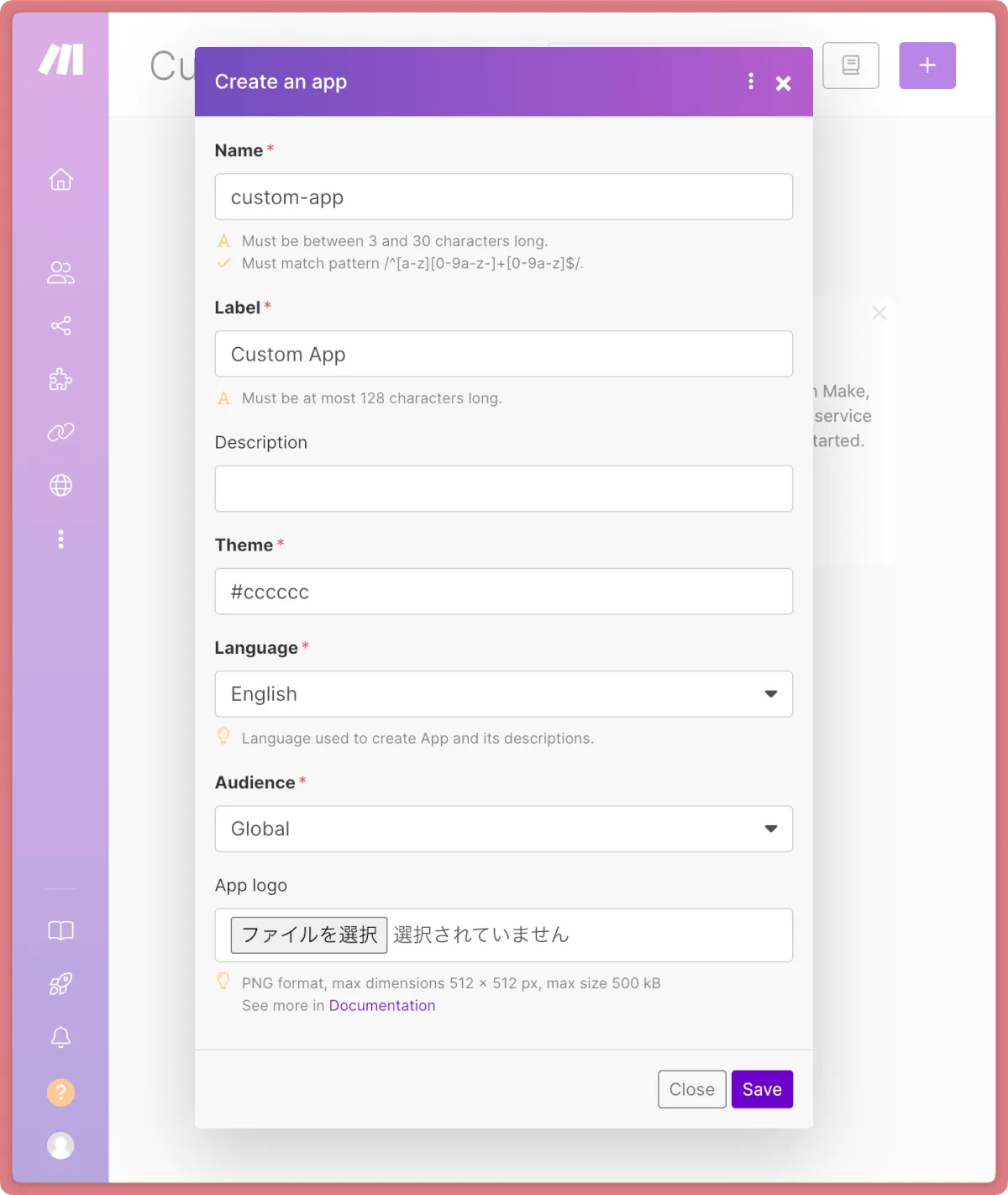 MakeのCustom AppsはMakeで連携されていないサービスを自分で追加する為に利用します。