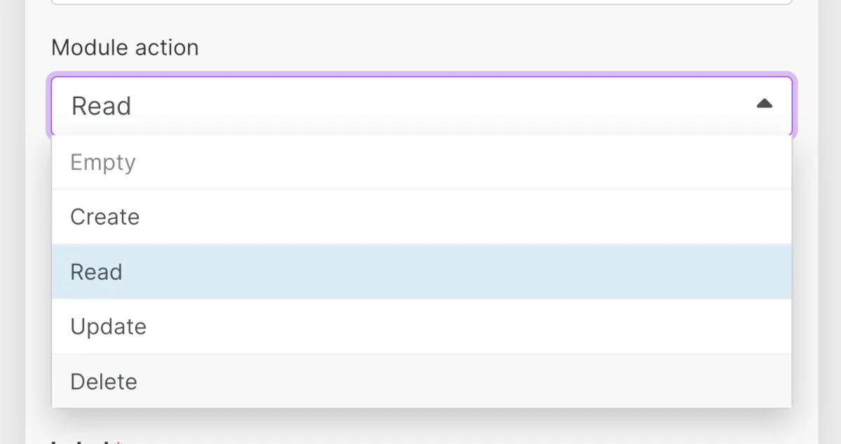 「Module action」は「Create」「Read」「Update」「Delete」が選択できます