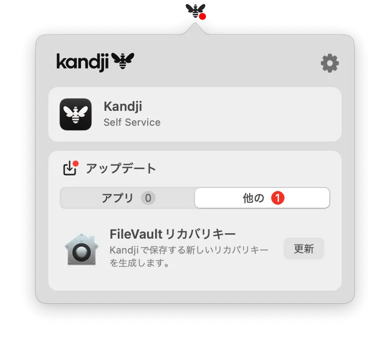 アプリとは異なりますが手動登録などでFileVaultディスク暗号化のリカバリーキーを再発行する場合もこのKandjiメニューバーアプリから再発行手順を通知することが可能です。
