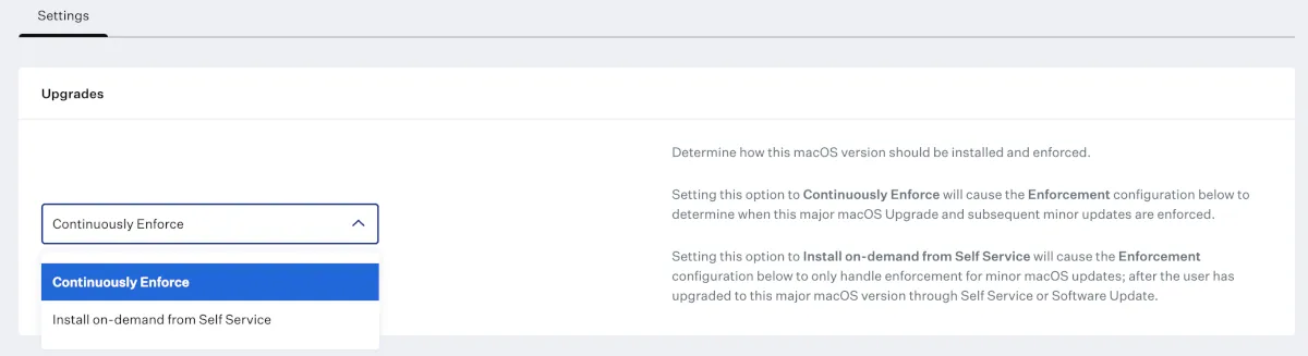 強制するかSelf Serviceでインストールするかも選べるし、