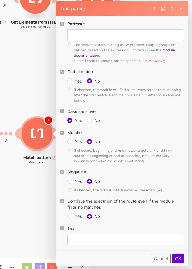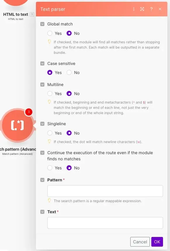 捕捉:TextParserのMatch Pattern(通常)とMatch Pattern(Advanced)は何が違うの?