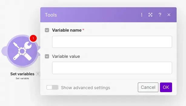 - Set Variable:変数の設定