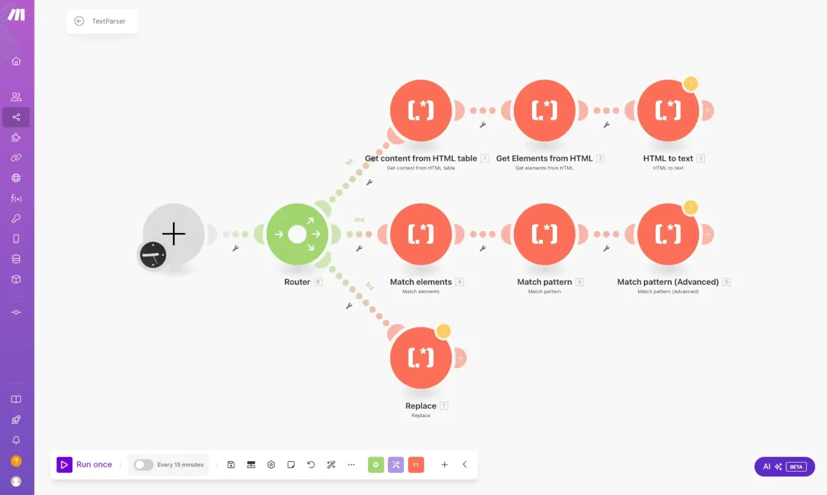 Text Parserは、HTMLやテキストからデータを抽出したり、特定のパターンに基づいて文字列を操作したりするための機能を提供します。
