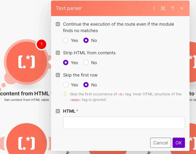 訳:テキストパーサーを使用してHTMLテーブルのコンテンツを取得し、グループ化を使用してシナリオ全体でデータをより使いやすくするテキストアグリゲーターを使用したテーブル付き電子メールのショーケース