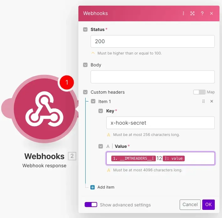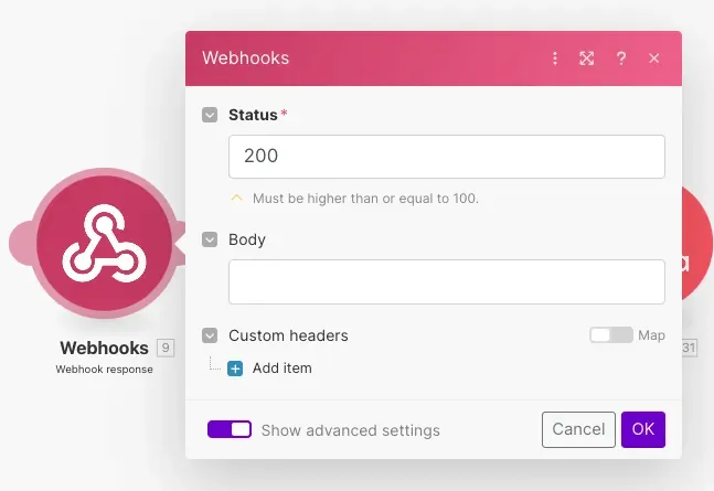まあiPaaSでWebhookレスポンスをカスタマイズできるものの方が珍しいです。これはmakeがすごい。