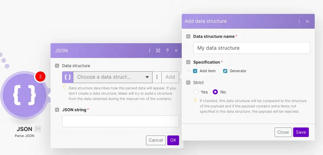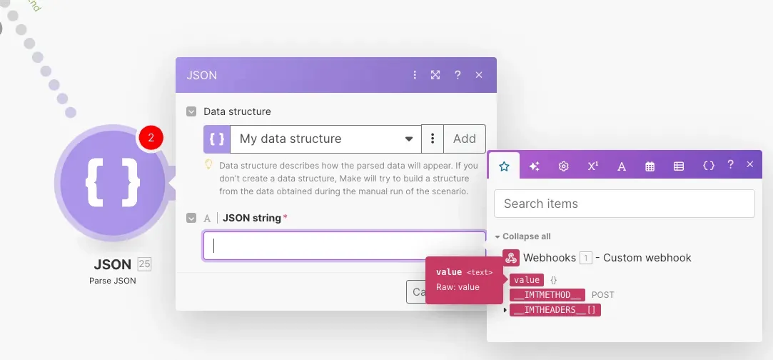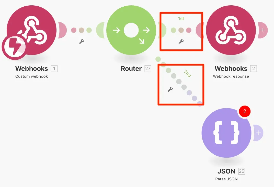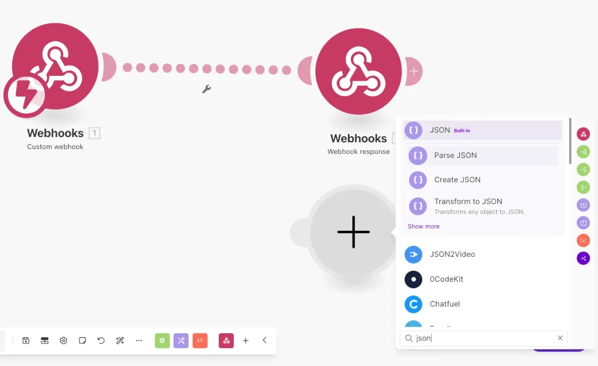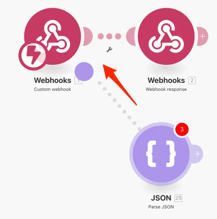 2−a−2.JsonからWebhookトリガーへ線を延ばす