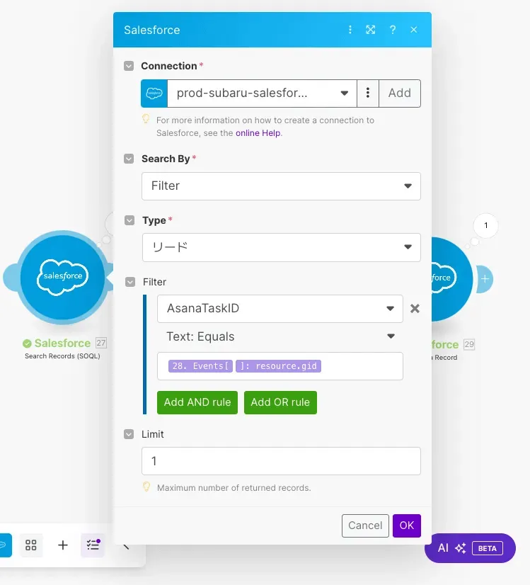 3-a.AsanaのタスクIDを元にSalesforceのレコードを取得