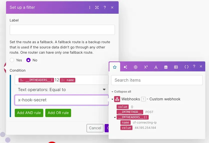 2ndの条件:リクエストのHeaderの12個目の要素が’x-hook-secret’ではない