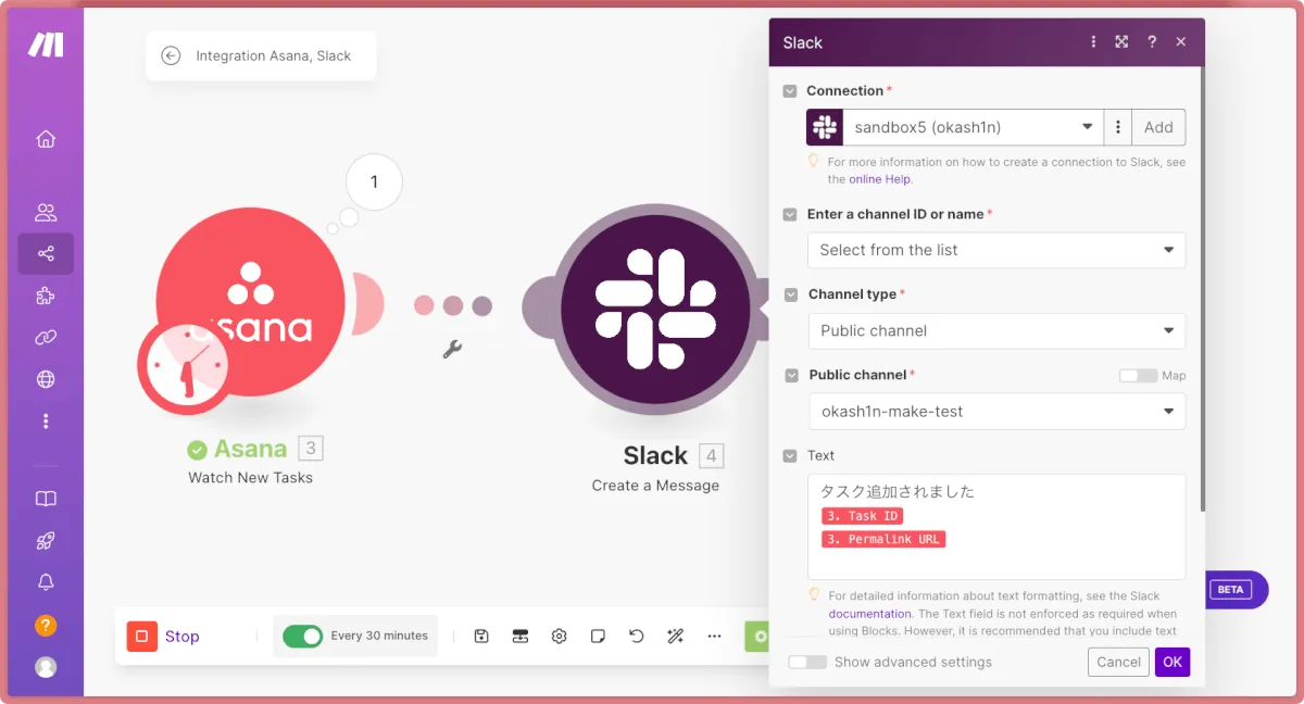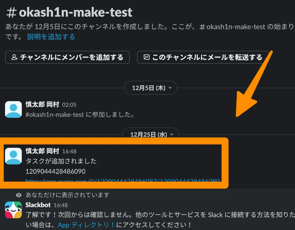 Asanaにタスクが追加されたら、Slackに通知されるだけの簡単なものです