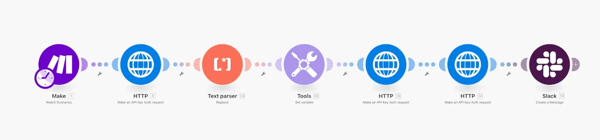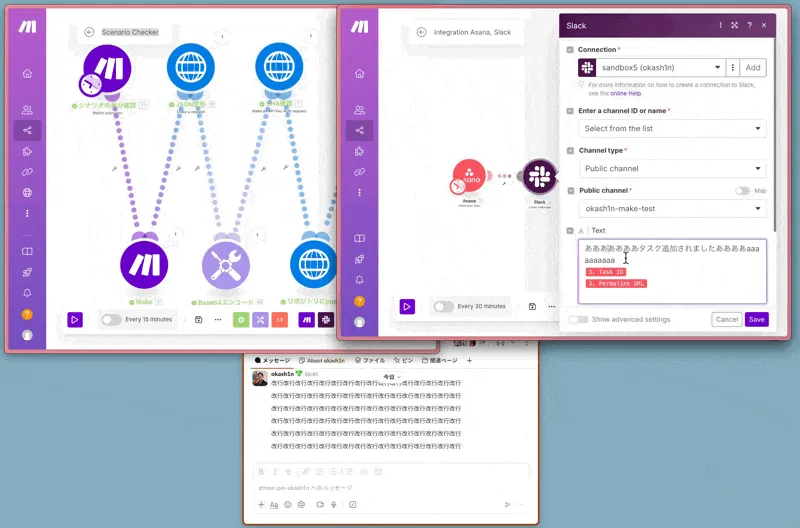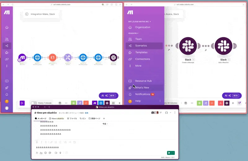 上記の実装のイメージはすぐに考えついたのですが、いくつも試行錯誤して、結果諦めた部分もあったりします。正直あまりスマートではないのでボツにしようかと何度も思いましたが、そういった「ハマりポイント」を紹介すること自体が有益かもしれないので、誰かがMakeからAPIを叩くシナリオを作る時に役に立つことを願って、作り方やハマりポイントを詳細に紹介してみようと思います。