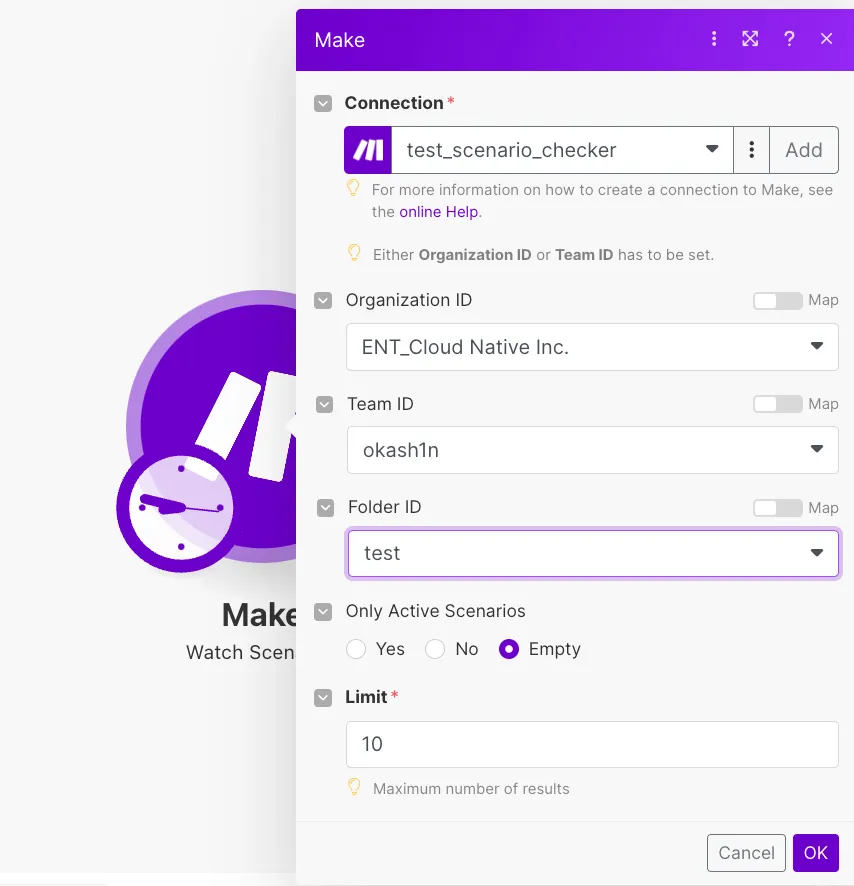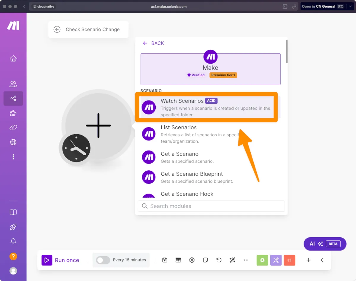 次に一つ目のモジュール「Make | Watch Scenarios」を追加します