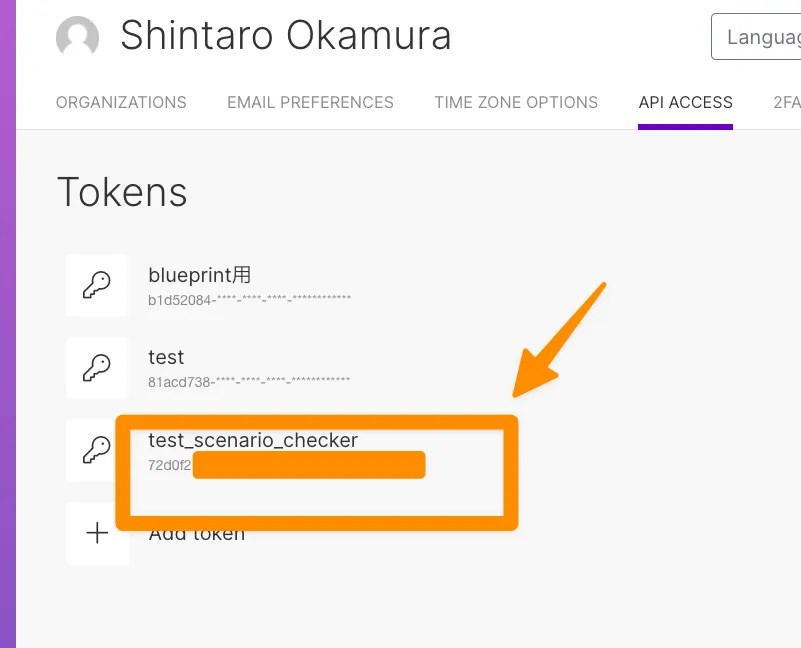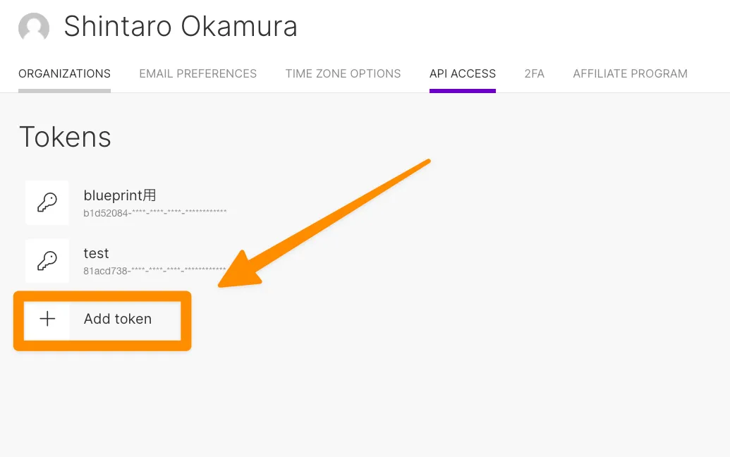 Profile => API ACCESSからトークンを発行できます