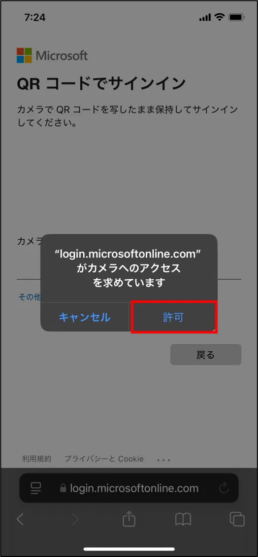 - カメラへのアクセス許可が求められた場合は [許可] をクリック