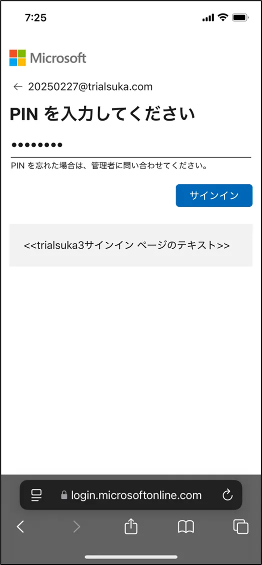 - 共有された初期PINコードを入力し、[サインイン] をクリック
