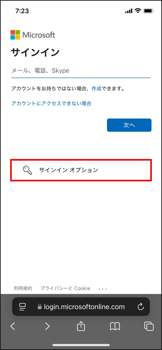 - ログイン時、[サインイン オプション] をクリック