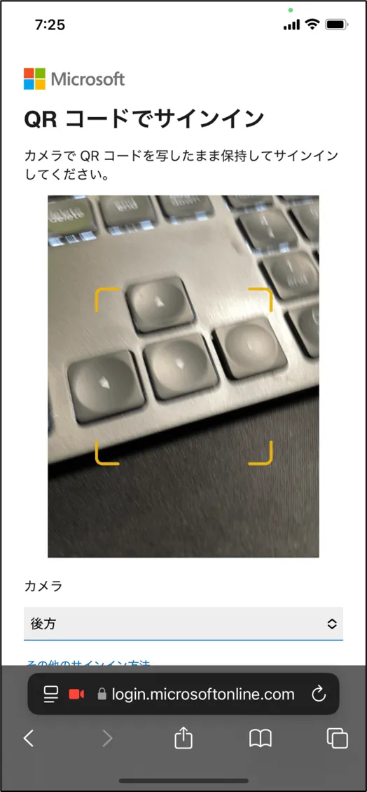 - [QRコードでサインイン] をクリック