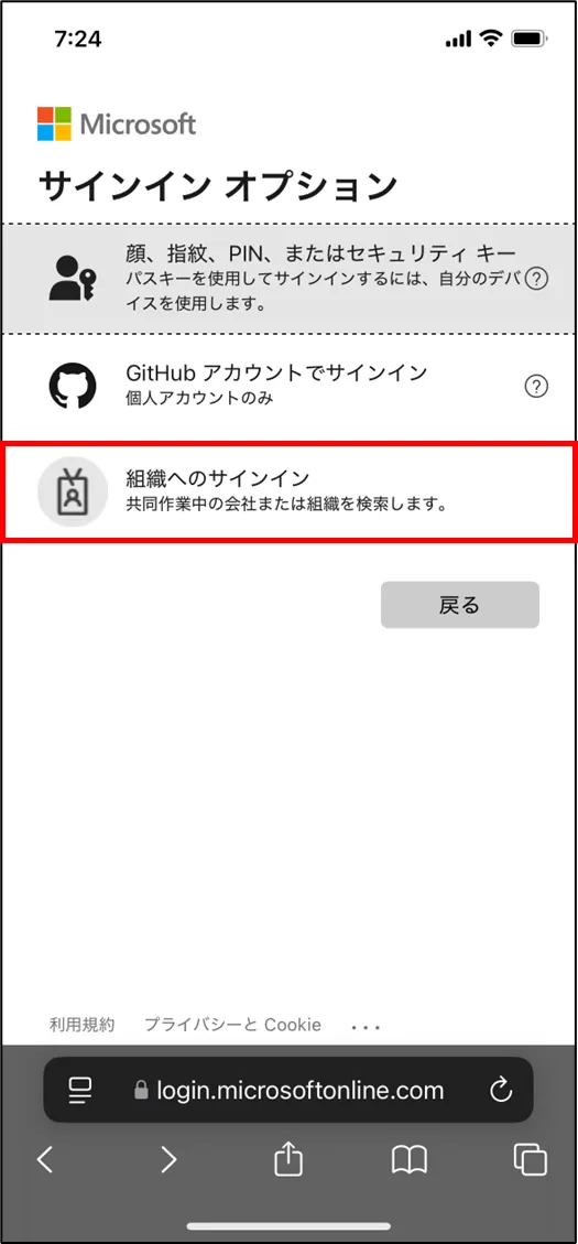 - [組織へのサインイン] をクリック
