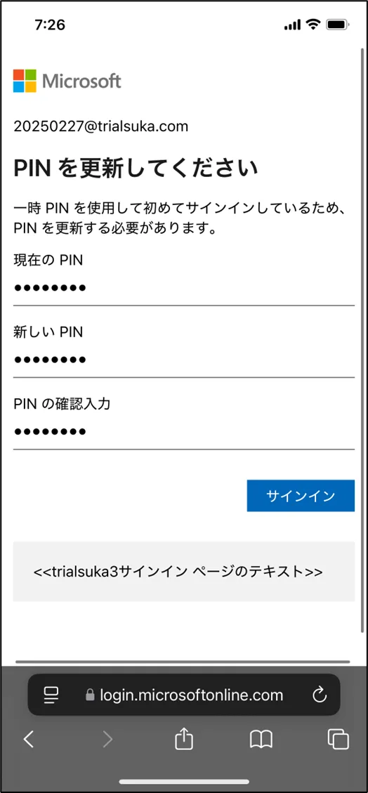 - 初回利用時はPINコードの更新を求められるため、任意のPINコードを設定して [サインイン] をクリック