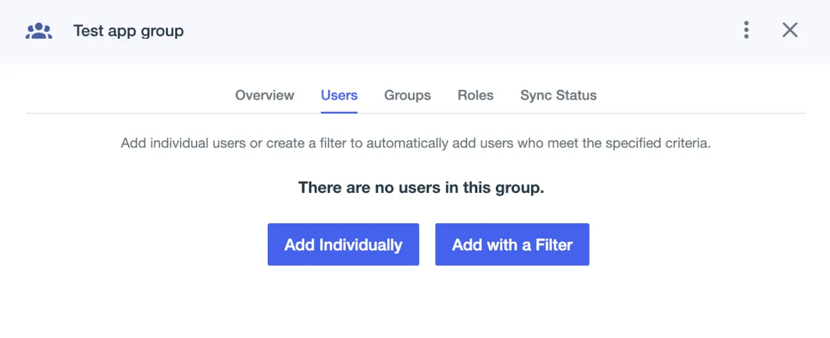 グループができたら、ユーザーを追加します。”Users”タブを開いて、”Add Individually”ボタンをクリックします。
