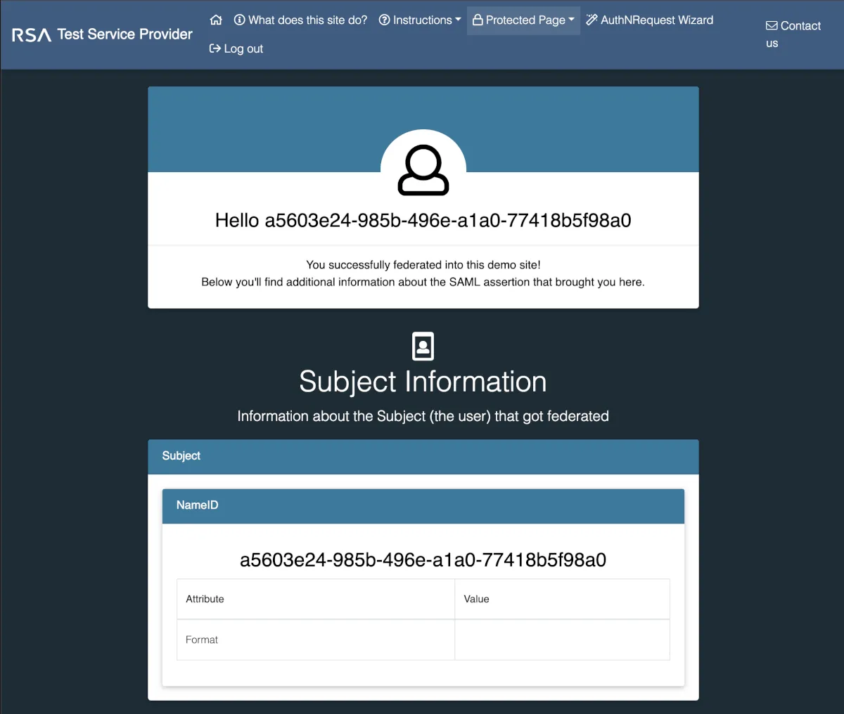 SAML Subjectのデフォルトは、自動生成されるUUID形式のUser IDとなっているので、このような表示になっています。連携する属性をカスタマイズすることで、別のsubjectを使うことも可能です。
