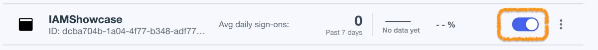 最後に、アプリケーション一覧から、アプリケーションの右にあるスイッチをクリックして、アプリケーションを有効化します。このスイッチがオンにならないと、このアプリケーションを使うことはできません。