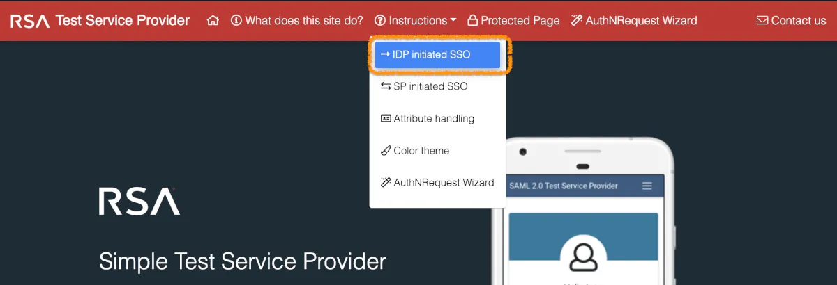 上のメニューの “Instructions” -> “IDP initiated SSO” を開きます。