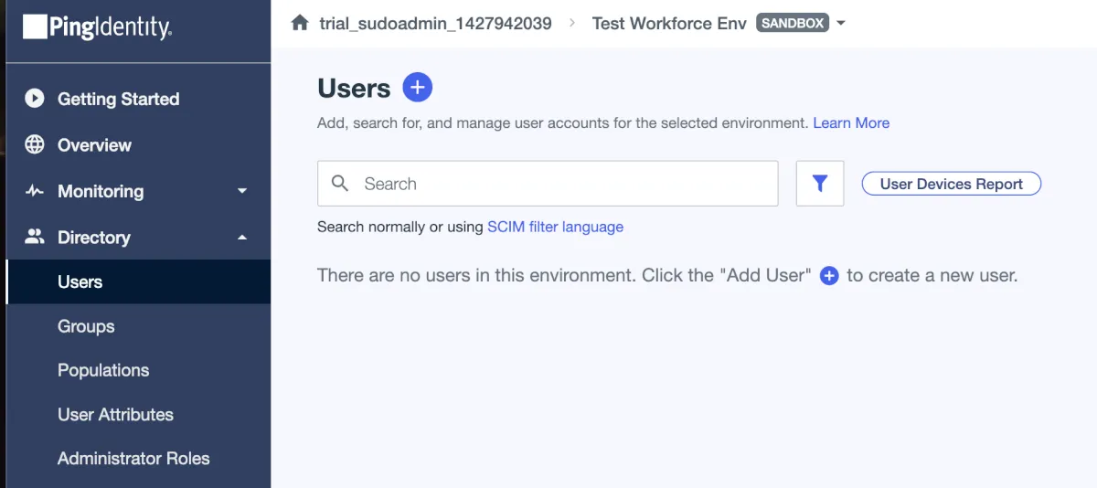 左メニューの”Directory”から、”Users”を開きます。開いたページの上の方にある、”Users”の右にある “+”ボタンを押します。