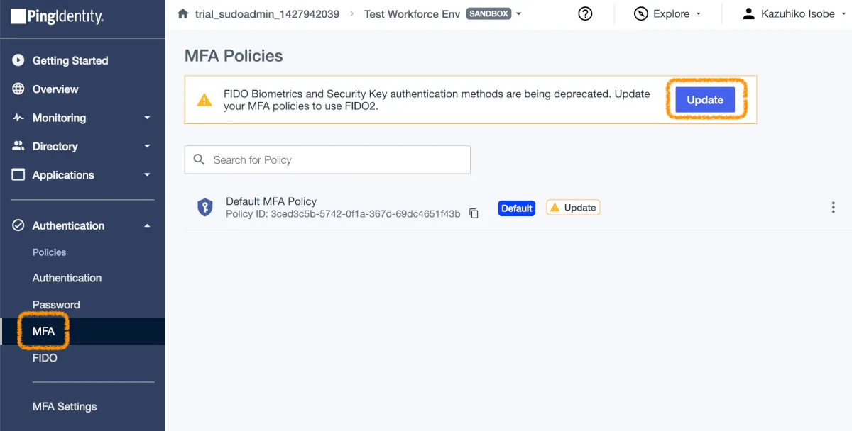 2025年3月時点では、初期状態のMFAポリシーは、FIDO BiometricsとSecurity Keyとなっているのですが、これらは非推奨となり、FIDO2を利用するようにポリシーのアップデートを行います。