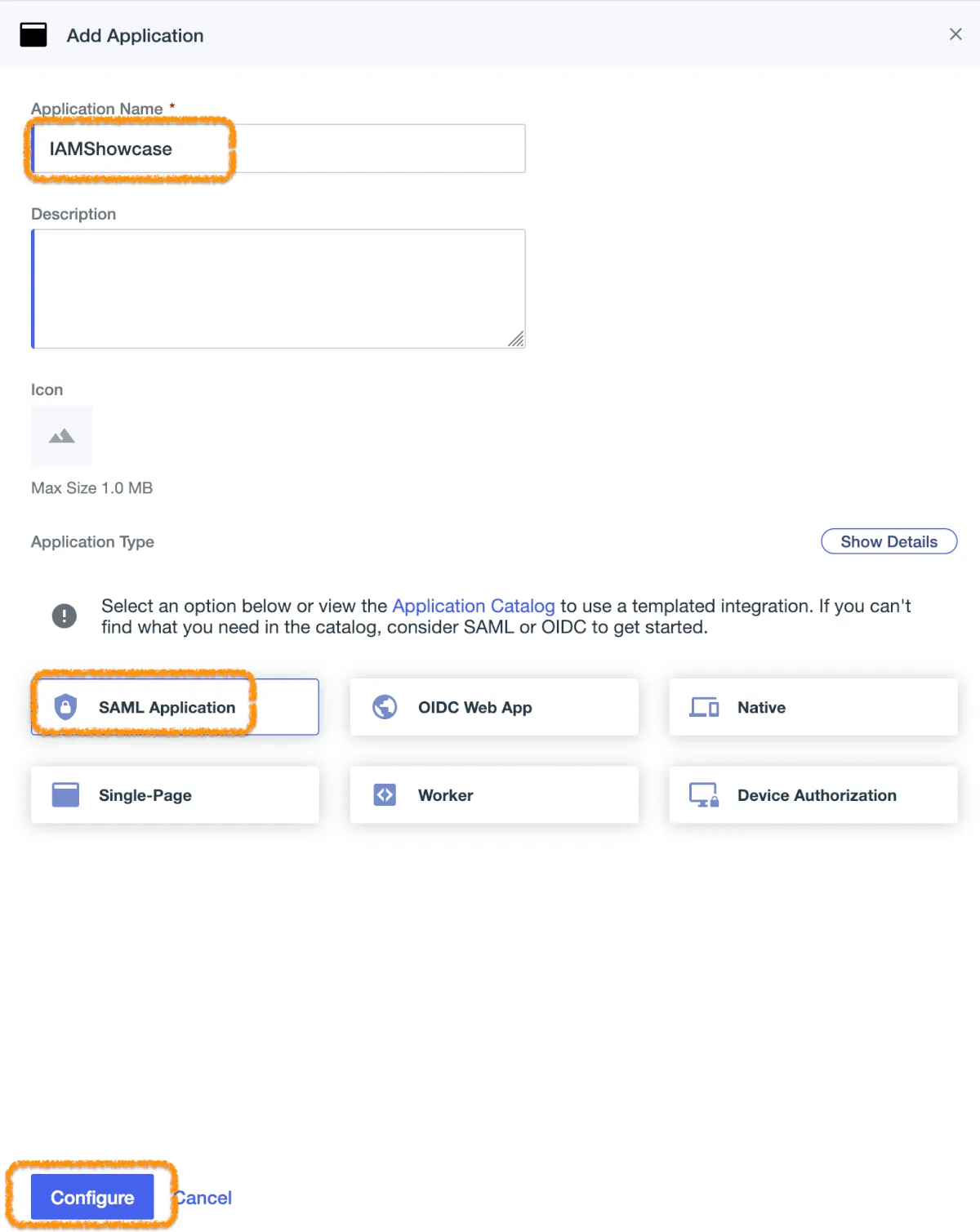 - Authoritative Identity Provider: この環境に、他の認証プロバイダーが登録されている場合は、どれを使って認証するのかを選択できる